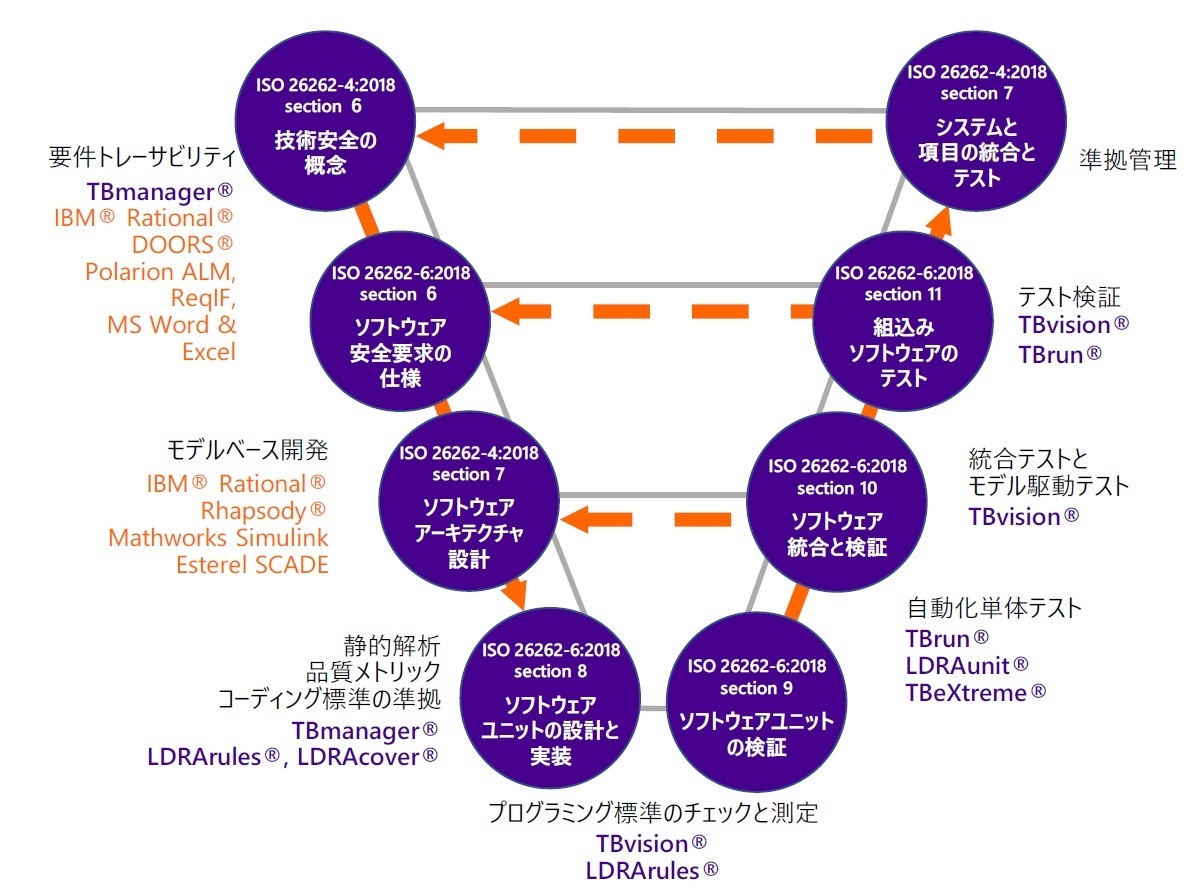 ISO 26262 第2 版の各条項の目的をどのように支援できるかについて、それぞれの表に対比させながら解説