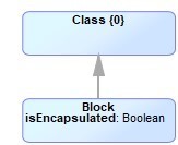 プログラミング言語やモデリング言語を含むすべてのコンピュータベースの言語は、いくつかの形式で定義されています。 モデルベースの開発の場合、言語は通常、メタモデルによって定義されます[6]。 メタモデルは、モデルを作成するために使用できる構造と構文を記述します。図1は、 SysMLから取得したメタモデルの非常に小さな断面です。「Block」には、ブロックがブラックボックス要素として扱われるかどうかを定義する「isEncapsulated」と呼ばれる1つのブールプロパティがあります[12]。 このメタモデルに基づくと、「Block」には、そのスーパータイプ「Class」によって定義されるプロパティのような他のプロパティはありません。これらの「Class」固有のプロパティは、この小さなメタモデルから省略されています。