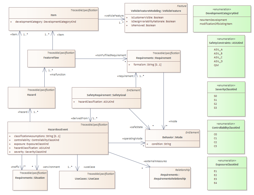 信頼性パッケージには、予備的なハザード分析リスク評価(HARA:Hazard Analysis Risk Assessment)による安全要件の定義と分類、安全ライフサイクルでの役割に応じた安全要件の追跡と分類、および安全制約を使用した安全要件の形式化のサポートが含まれます。 信頼性パッケージ自体は、自動車アーキテクチャモデリング言語EAST-ADLの拡張であり、各フィーチャー、各機能、ハードウェア、および関連する割り当てのモデリングサポートをすでにカバーしています。 この完全なメタモデルは、現在レビュー中の新しいバージョンとともにhttps://east-adl.info/Specification.htmlで説明されています。