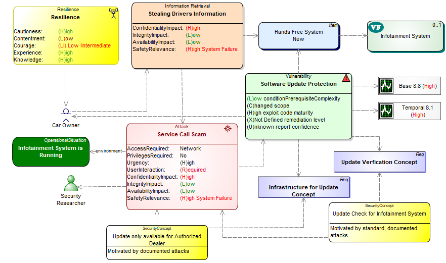 これに対する対策は、たとえば、公式の自動車工場だけが特別な装置でバイパスできる更新ロックだけでなく、新しいものは必要ないというインフォテインメントシステム自体からの警告であり、何かがインストールされる前に被害者に警告することです。 これをモデル化するために、ソーシャルエンジニアリング攻撃用のSAMメタモデルの最新の拡張機能が使用されました(https://www.in.th-nuernberg.de/professors/BerglerMa/SAM/)。