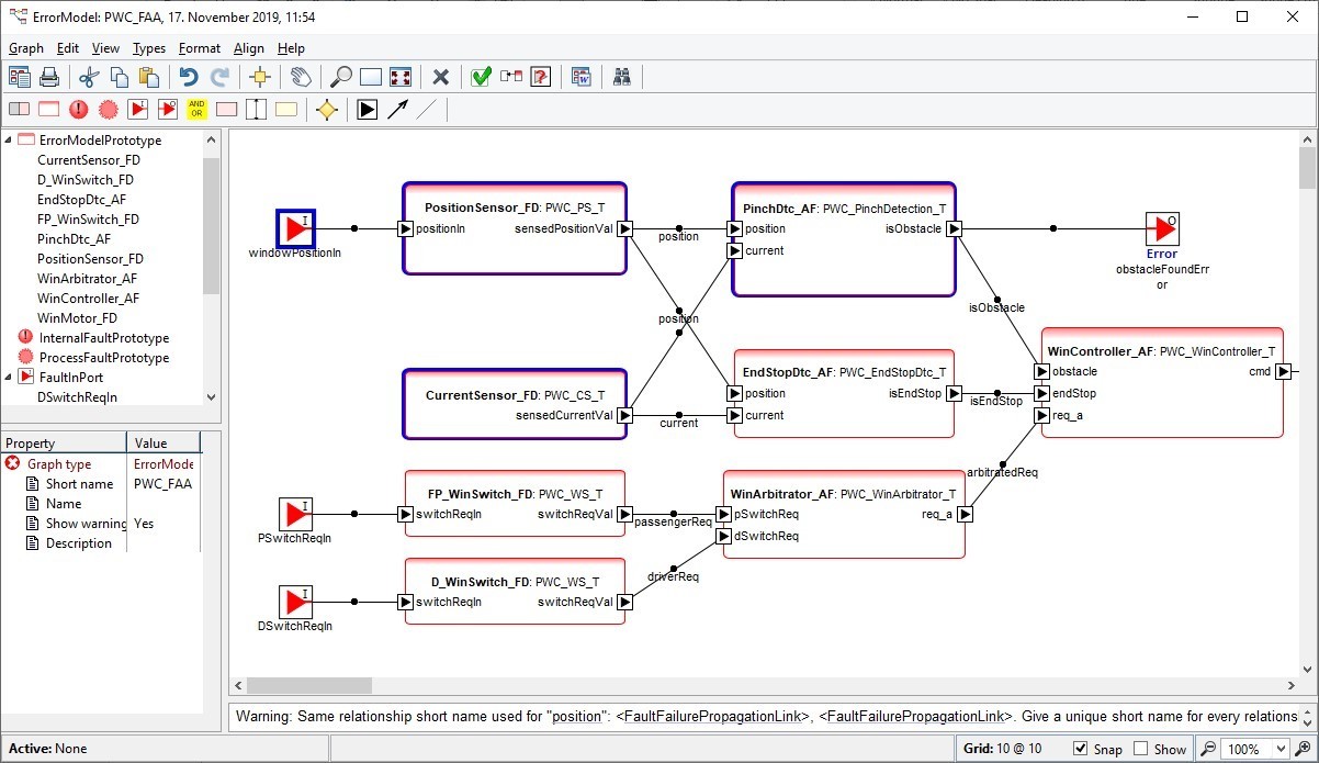 ただし、図12のようなシステム設計は、faults、failures、failure ratesなどの一般的な安全面を識別およびキャプチャしないため、安全設計には直接適していません。設計モデルには、安全作業に関係のない情報も含まれており、安全エンジニアにとって不必要な複雑さが加わります。 たとえば、図12に示す小さなシステムについて考えてみます。これは、PowerWindowコントローラーの機能アーキテクチャ、つまりその機能、ポート、およびそれらの間の接続を示しています。 機能は分類され、より詳細な内部階層構造を持ち、それらのポートにはインターフェイスとデータタイプがあります。 関数の分類やデータタイプの定義など、これらの側面の一部は安全設計には直接関係しませんが、実装(AUTOSAR ARXML、Simulinkモデルなど)を生成するために必要です。
