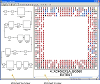 JTAGテストプログラムの全設定段階で、シンプルなコンテキストメニューのクリックから、直ちに回路図上の該当箇所を表示できます。例えばテスト のレビューを支援するDFT(Design For Test Analysis)ツールによるカバレッジ解析にも活用頂けます。