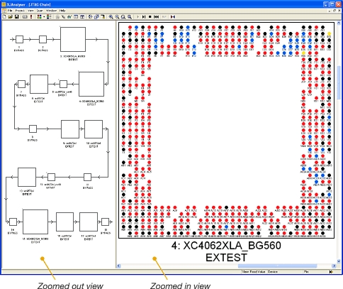 更にデバイスが基板上に正しく搭載されていることをチェックするなら、XJTAG Layout Viewerのレイアウト表示機能を活用して物理的な配置をピンポイントに特定できるでしょう。